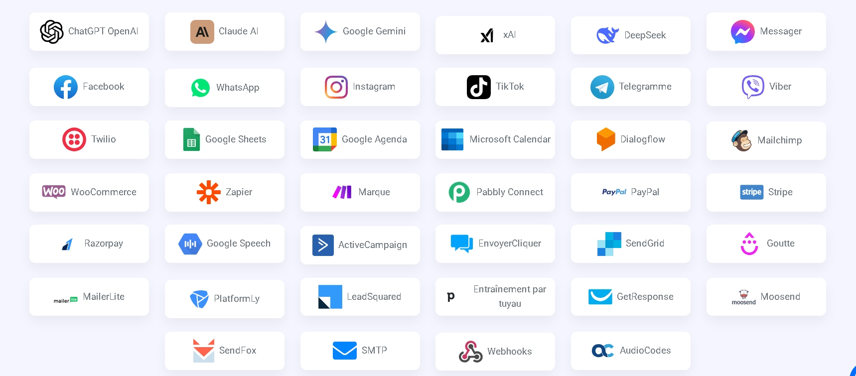 Laissez ChatGPT, Gemini, Claude AI ou xAI répondre instantanément à vos clients avec les données de votre entreprise.